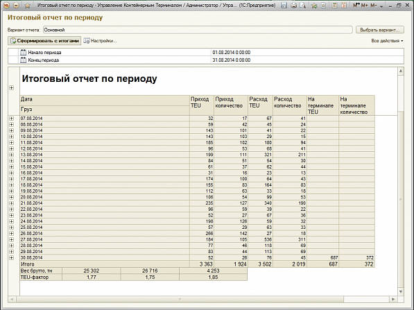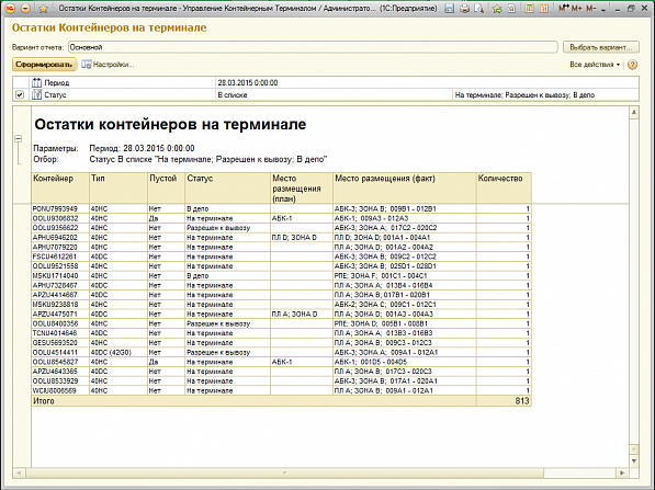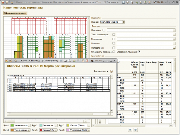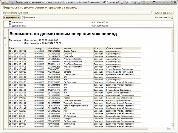 Все данные, которые получает и обрабатывает CTerminal, используются для формирования отчетов в реальном времени. Мониторинг работы терминала в реальном времени, например при помощи графического отчета, позволяет диспетчерам сразу реагировать на события, а руководителям оперативно принимать взвешенные решения. Примеры типовых отчетов системы: