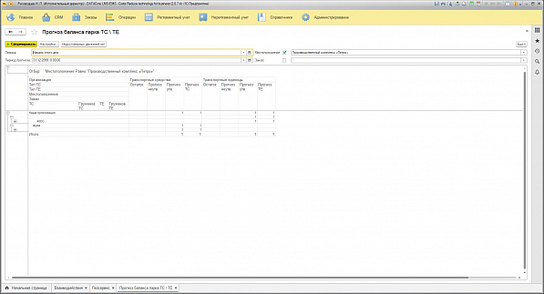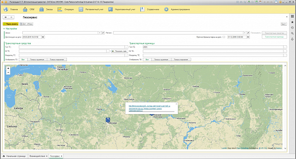 Индикация на карте информации о статусе заказов, местоположении грузов и транспортных средств, прогнозируемого избытка или недостатка парка на заданную дату.