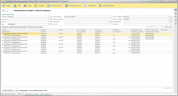 Предварительные заказы клиентов регистрируются с указанием пунктов отправления и назначения, веса и объема груза, желаемого срока доставки. Заказы группируются, отсекаются заранее убыточные отправки: