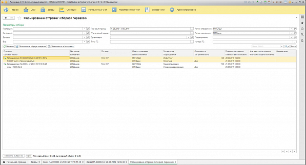Модуль разносит счета поставщиков не только на рейс в целом, но и на каждую отправку рейса. Это позволяет планировать, отслеживать и контролировать финансовый результат каждой отправки.