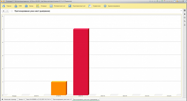 Модуль позволяет оценить нагрузку на подразделения, контрагентов, транспортные узлы, склады и т.д. с учетом текущего состояния загруженности ресурсов и запланированных операций. Система оповещает, когда текущих ресурсов недостаточно. Например: