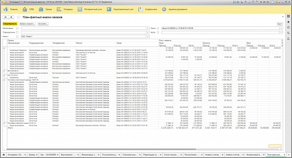 план-фактный анализ маржинальности и прогнозирование маржинальности заказов;