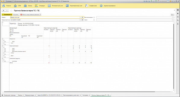 прогноз избытка и недостатка парка собственных транспортных средств и единиц, оптимальные передислокации;